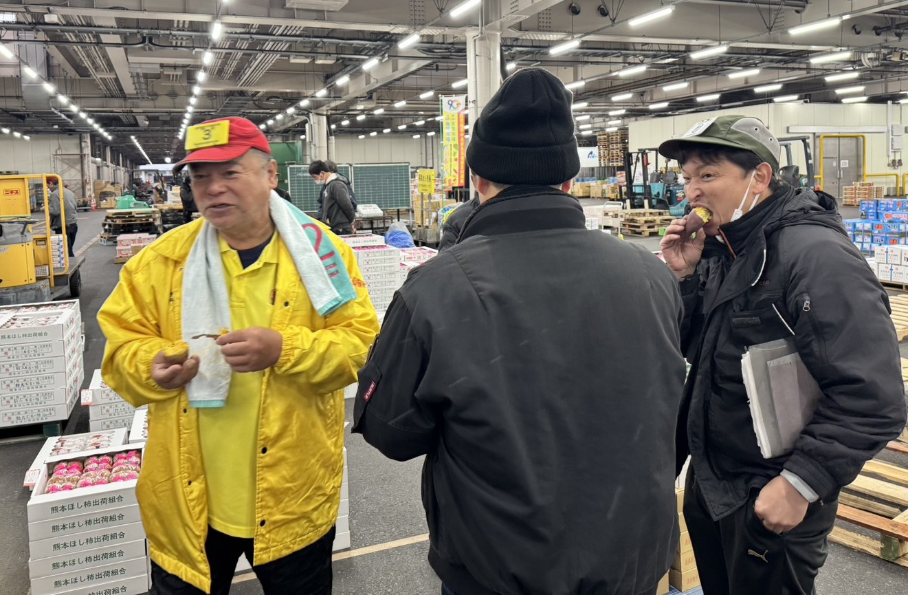 香ばしい焼き芋の香りが売り場に広がり、買受人の皆さんに美味しく召し上がっていただきました。
